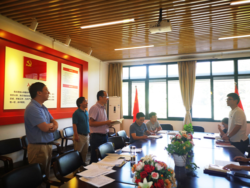 学院党委书记/院长陶祥兴简要介绍了学院的党建工作文化和“不忘初心、牢记使命”主题教育开展情况。巡回指导组成员郑锋仔细询问学院主题教育开展情况,并对学习教育、氛围营造、网站建设等方面提出了宝贵的意见和建议。郑锋现场检查了正在集中学习的学院行政党支部开展主题教育的情况,对如何更好地开展个人自学和支部集中学习提供了很多经验。