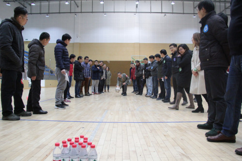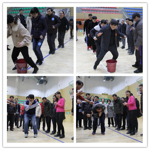 的大力支持,感谢各位教职工的辛苦付出;他表示在新的一年里,全院师生将认真贯彻落实校第四次党代会精神,凝心聚力、放飞新梦想、谱写新篇章,并祝愿大家新春愉快、身体健康、阖家幸福。随后,开始了辞旧迎新智慧趣味体育活动:所有教职工随机分成四个队进行了同舟共济、欢乐保龄球、众志成城、噼里啪啦贺新年、同心鼓、蹦蹦跳跳迎新年等集趣味、智慧、健康于一体的竞赛活动。各组的比分你追我赶,好不热闹,呈现出欢欢喜喜过大年的节日气氛。