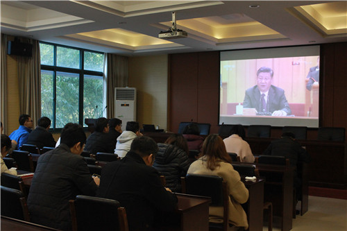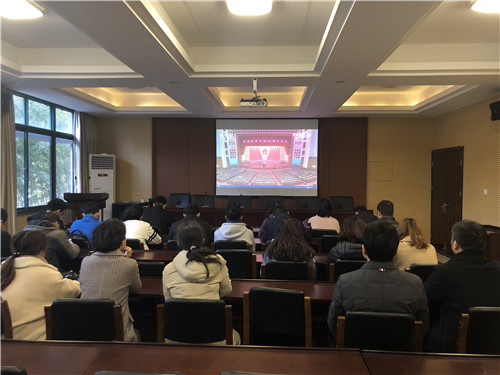 党委组织学院师生党员在A4-216会议室集中收看大会的实况转播。