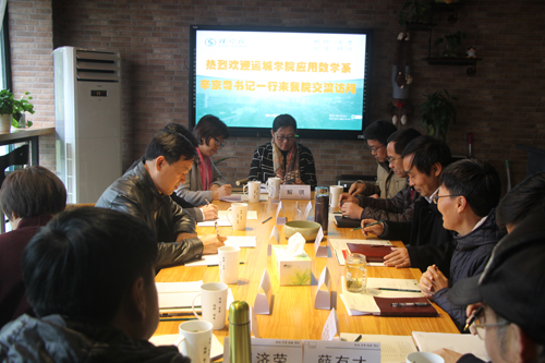 12月1日,运城学院应用数学系辛京奇书记来av影片 交流访问,院长陶祥兴教授、党委书记苗红亚等热情接待了客人。 苗红亚代表学院党政对辛京奇一行的到访表示了欢迎。陶祥兴介绍了学校和学院的基本情况,特别是近几年学院在学科建设、专业等方面开展的举措和成就。辛京奇介绍了运城学院数学系的基本情况,双方分别就学科建设、专业建设、实习实训、学风建设等方面的做法和经验进行交流。 章迪平、王宝明、龚世才、薛有才参加了接待。