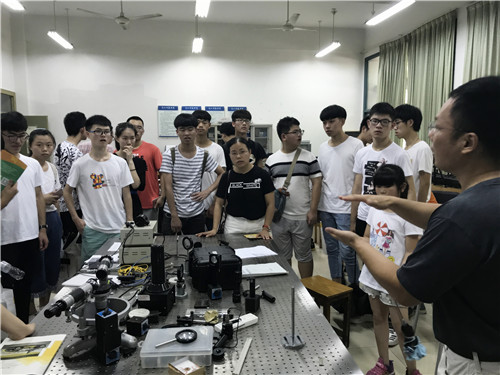 科技竞赛的成果,带领同学们参观了物理实验室,进行了各类演示实验,同学们对3D打印、光电、激光等先进实验仪器表现出了浓厚的兴趣。