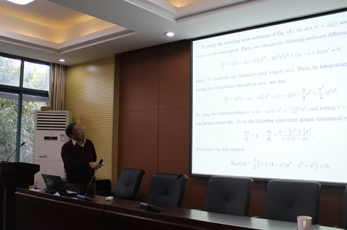 报告中,李继彬教授为大家系统的讲解了周期Peakon、Pseudo-Peakon、compacton解理论研究历史背景、目前进展以及最新研究工作。