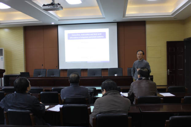 和山数学论坛第108讲,做了题为Homoclinic, heteroclinic and limit cycle bifurcations of singularly perturbed systems的学术报告。此次报告由院长陶祥兴教授主持,av影片