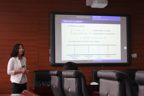报告中,尹淦老师为大家系统的讲解了非线性双曲型守恒律方程组经典问题,及其历史背景、最新研究成果和应用前景。
