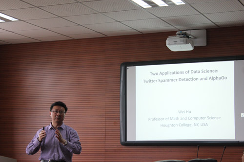 5月25日,美国霍顿学院(Houghton College) Wei Hu教授应邀做客和山数学论坛第95讲,做了题为“Two Applications of Data Science: Twitter spammer detection and Alpha Go”的学术报告。活动由校学科带头人、av影片