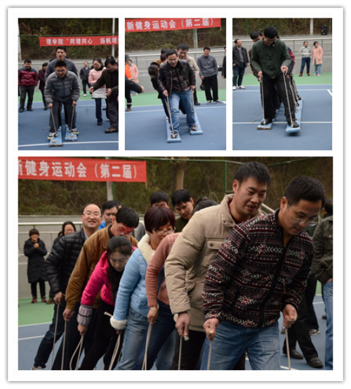 在此起彼伏的呐喊声中,一项项惊险刺激的项目如勇往直前(袋鼠跳)、齐心协力(大脚板)、共同奋进(击鼓颠球)、任重道远(珠行万里)激起了老师们的参与热情,各组的比分你追我赶,好不热闹。最终,四支队伍以各项比赛累计的总分决出了名次。