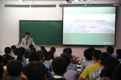 院长陶祥兴、党总支书记苗红亚、院长助理骆钧炎、数学与信息科学系主任朱婉珍,应用物理系主任潘卫清,副主任王建中,办公室主任裘彬强及学院辅导员、新生班主任、新生助班等参加了开学典礼。