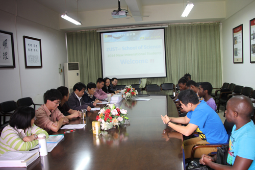在闻理园A4-222举行2014级留学生欢迎会。院长陶祥兴、党总支书记苗红亚、院长助理骆钧炎、系主任朱婉珍、系副主任章迪平、许梅生和相关的教师代表参加了开学典礼,开学典礼由骆钧炎博士主持。