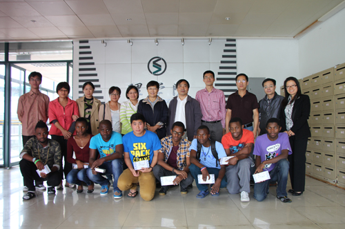 针对留学生提出的一些学习、生活等方面的问题,相关领导及专业教师一一作了解答。最后,学院还向留学生赠送了纪念品并合影留念。