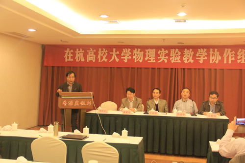 会上,叶高翔校长致词,并介绍了我校安吉新校区的办学情况。他还围绕人才培养和物理实验教学现状,就如何提高大学生探求物理知识的兴趣、促进物理实验与理论的结合阐述了自己的观点。浙江工业大学国家示范中心实验室主任隋成华教授也在会上发言,他就深化物理实验教学改革和实验室建设,提出了一些指导意见和建议。会议期间,浙江大学物理实验中心厉位阳教授、杭州师范大学物理实验中心丁望峰博士、中国计量学院张高会教授、我校物理实验中心徐弼军博士等四位老师分别对当前的物理实验课程建设、演示实验室建设、省级示范中心建设及创新基地建设与研究型实验教学等方面做了生动精彩的专题报告。会议还讨论了大学物理实验教学改革、精品课程建设、示范中心建设等议题,并对一些成功的经验与目前的困难及发展建设方向进行了深入的探讨。