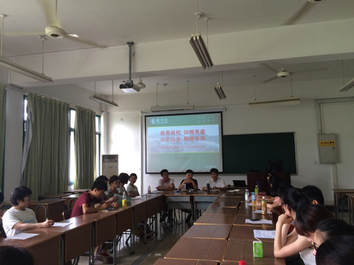 “感恩母校,回顾青春,立足社会,畅想未来——2014届毕业生沟通面对面”座谈会在A4-302教室举行。学院党总支书记苗红亚、院长岑岗、院长助理骆钧炎、毕业班辅导员王杨参加会议。会议由苗红亚主持。