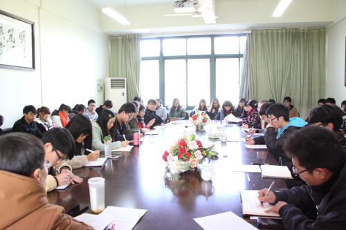 在A4-222召开了学生干部工作例会。会议由院党总支书记苗红亚主持,辅导员以及分团委、学生会、社管学生干部、各班班长和团支书参加了本次会议。