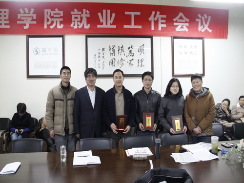 会议表彰了2013年度学院就业工作先进个人:章迪平、武敏、孙晓勇。苗红亚同时宣布了学院关于促进就业工作的奖励措施。