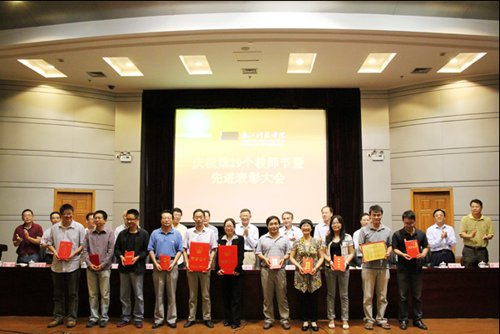 会上,校党委书记王建华代表学校向全体教职员工致以节日的问候,并发表了热情洋溢的讲话。会议还为在过去一年中取得优异成绩的教师代表颁发了荣誉证书,av影片 多位教师上台领奖。其中,陶祥兴获省师德先进个人;王长荣、朱婉珍获省高校优秀教师;骆钧炎获浙江省高校第七届青年教师教学技能竞赛优秀奖;雷建光获2013校优秀主讲教师;陶志雄老师从教三十年。