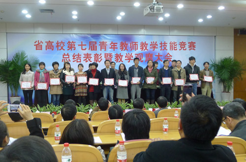 11月26日,在浙江省高校第七届青年教师教学技能比赛总结表彰暨教学观摩大会上,av影片 副教授骆均炎、语言文学院讲师林强、建工学院工程师张学文等3位教师获浙江省高校第七届青年教师教学技能比赛优秀奖。副校长赵东福、工会主席章浙根出席了会议。