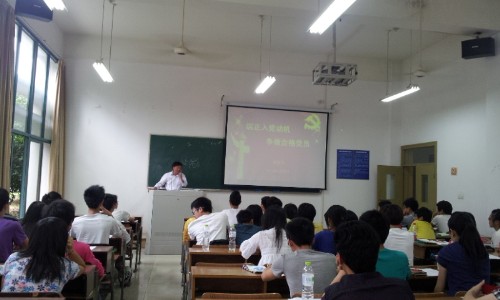 胡浙平老师在热烈的掌声中为同学们带来了一堂生动的党课,他向同学们介绍了党的光辉历程,并从大学生的实际情况出发,结合当下社会现实,深入浅出地剖析了当代大学生形形色色的入党动机,从而帮助学员们认清什么是正确的入党动机、如何端正入党动机;并且和学员们探讨了如何提高政治素质、道德素质和文化素质,以党员的标准来严格要求自己,在党校的学习中提高自己的思想觉悟,锻炼自身能力,以便更好的在同学中起到先锋模范作用,服务大众。