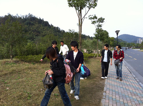 党员们分工明确,整装出发,环着西蜜湖顺时针进行清理。平时半个小时就能环绕一圈的西蜜湖,党员们走了近两个小时。平日里环保工人定期的清理,已使得西蜜湖看起来干净整洁,但确实还存在许多“漏网之鱼”。一路上,党员们各司其职,大件小件垃圾统统不放过,分类进了各自的垃圾袋。一路下来,大家手上的“战利品”越来越多,额头的汗珠集成豆大,但大家环保的热情却丝毫不减。
