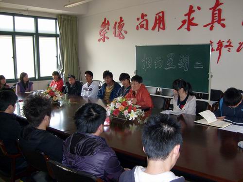 学工组与09级部分学业优良同学在会议室“相约星期二”。