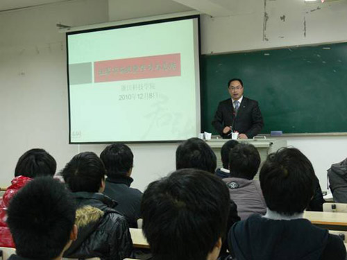 报告会上,许经理为同学们深入浅出地讲解了资本市场的投资理念、操作经验及行业发展前景。他渊博的知识、先进的理念加之幽默风趣的阐述,赢得了与会师生的热烈掌声。会上,许经理还盛情邀请金融精算辅修专业及信计专业的学生毕业后加盟国泰君安。