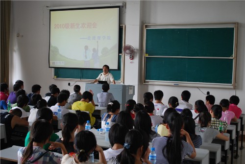 院长岑岗讲话,他向新生们提出了几点要求:第一, 希望大家树立远大理想、立志成才。第二,希望大家努力学习, 培养创新能力。第三,希望大家加强自身修养,使自己成为一个高尚的人。学院副院长陶祥兴向新生们提出了“三个一”:一是实现一个转变,由青少年式学习转变为成人式的学习。二是树立坚定的信心,相信自己,我行!我能!三是培养一个好习惯,自觉、主动地学习。应用物理系主任王长荣和数学与信息科学系主任朱婉珍也在会上发言,并重点介绍了本专业特色。
