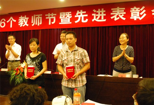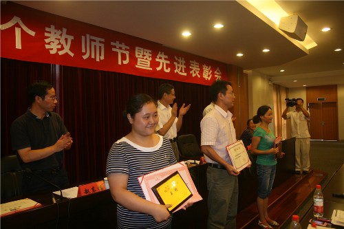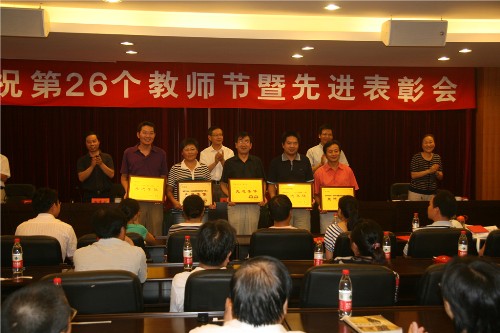 荣获2009年校“三育人”先进集体;王杨获2009年浙江省高校优秀辅导员称号;李祖樟获2009年校“三育人”先进个人。从教30年教师为王长荣、王建中和李小梅。王长荣教授还在会上作了发言。