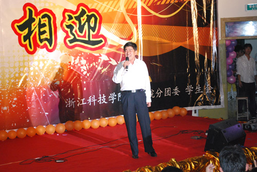 副院长岑岗为本次晚会致词,他代表学院全体教工对2009级新同学的到来表示热烈的欢迎,并希望同学们能尽快融入科技学院,融入av影片