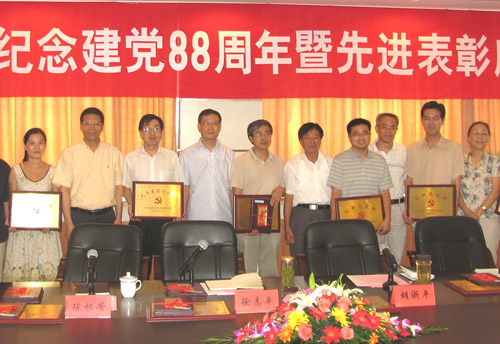 校党委书记徐志平在会上做重要讲话。他首先代表学校党委向受表彰的先进集体和个人表示祝贺和敬意,并通过他们向全校党员师生致以节日的问候。徐志平说,中国共产党成立以来的88年,是中国发生翻天覆地变化、实现伟大的历史性进步和历史性飞跃的88年。广大共产党员要深刻认识自己的历史责任,牢固树立党的意识,解放思想、求真务实,埋头苦干、奋发进取,在推动科学发展、促进社会和谐中充分体现当代中国共产党人的先进性,做时代先锋,为党旗添彩。