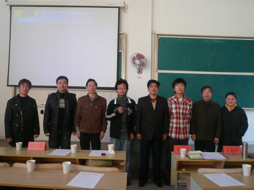 院长岑岗教授、应用物理系主任王长荣教授和系副主任王建中副教授、辅导员,还有应用物理系全体同学。