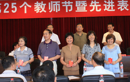 9月9日,学校隆重召开庆祝第25个教师节暨先进表彰会。校领导徐志平、杜卫、胡浙平、陈根芳、吕进、赵东福、冯军、鲁凤出席会议。会议由校党委副书记胡浙平主持。