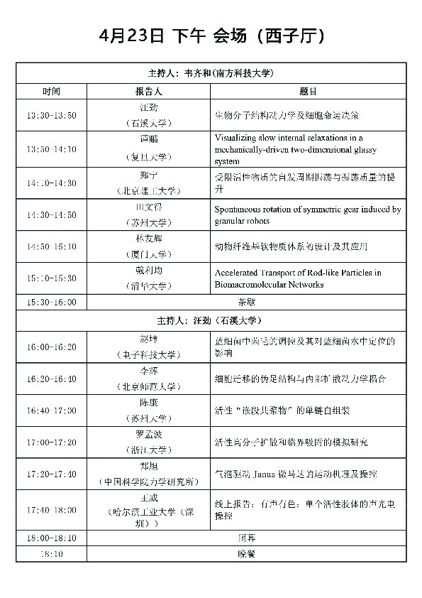 【廿周年院庆·学术会议】第二届活性软物质研讨会
