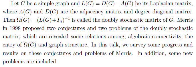 一、报告题目 :Merris' Problems and Doubly Stochastic Graph Matrices
